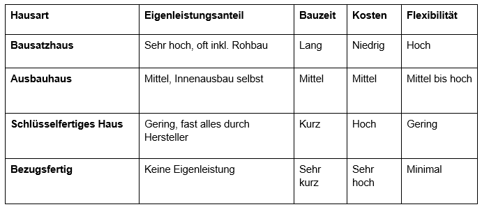 - Was unterscheidet ein Ausbauhaus von einem Bausatzhaus oder schlüsselfertigen Haus?