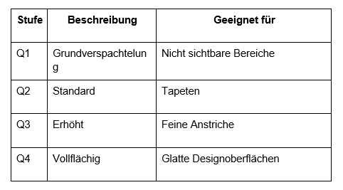 - Wie funktioniert das Verspachteln der Oberflächen in den Stufen Q1 bis Q4?