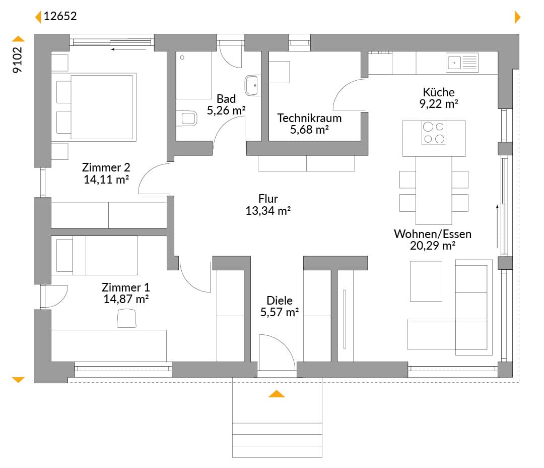 Von außen ein Blickfang und von innen ein Lichtfänger. NEXT Wood 88F überzeugt mit einer terrassenseitigen Glasfront inklusive Eckverglasung sowie einer klaren Linienführung. Diese Elemente moderner Architektur harmonieren bestens mit dem flachen Dach und sind vom angesagten Bauhausstil inspiriert.