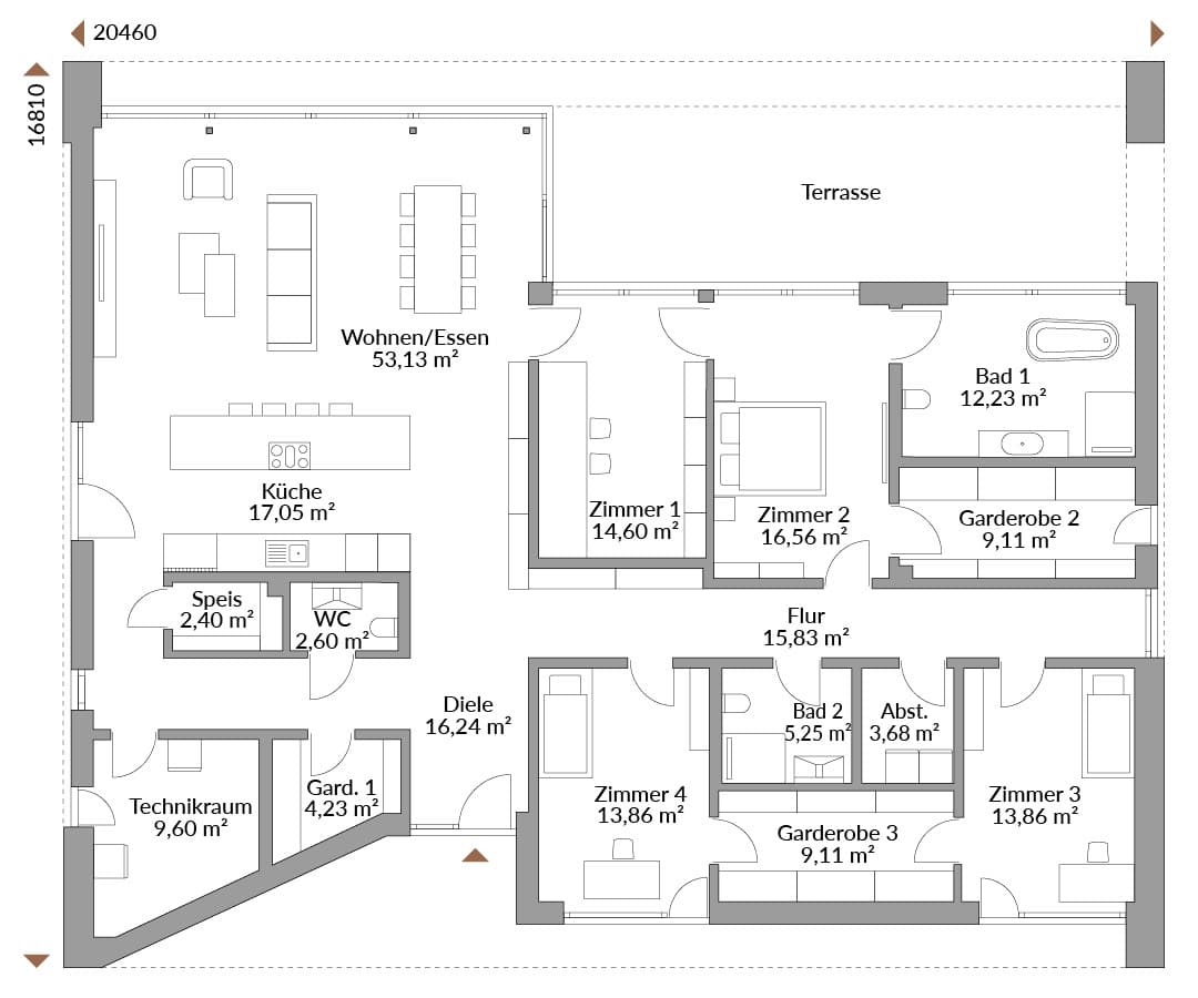 Vollständige Baubeschreibung und Materialspezifikation.