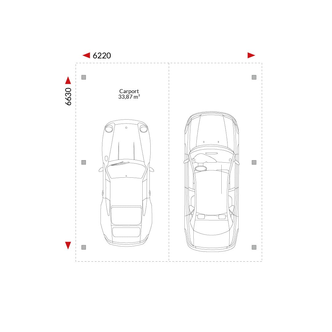 Doppelcarport mit Satteldach Grundfläche: 33,87 m² Außenmaße 5,82 m x 5,82 m Einfahrt giebelseitig