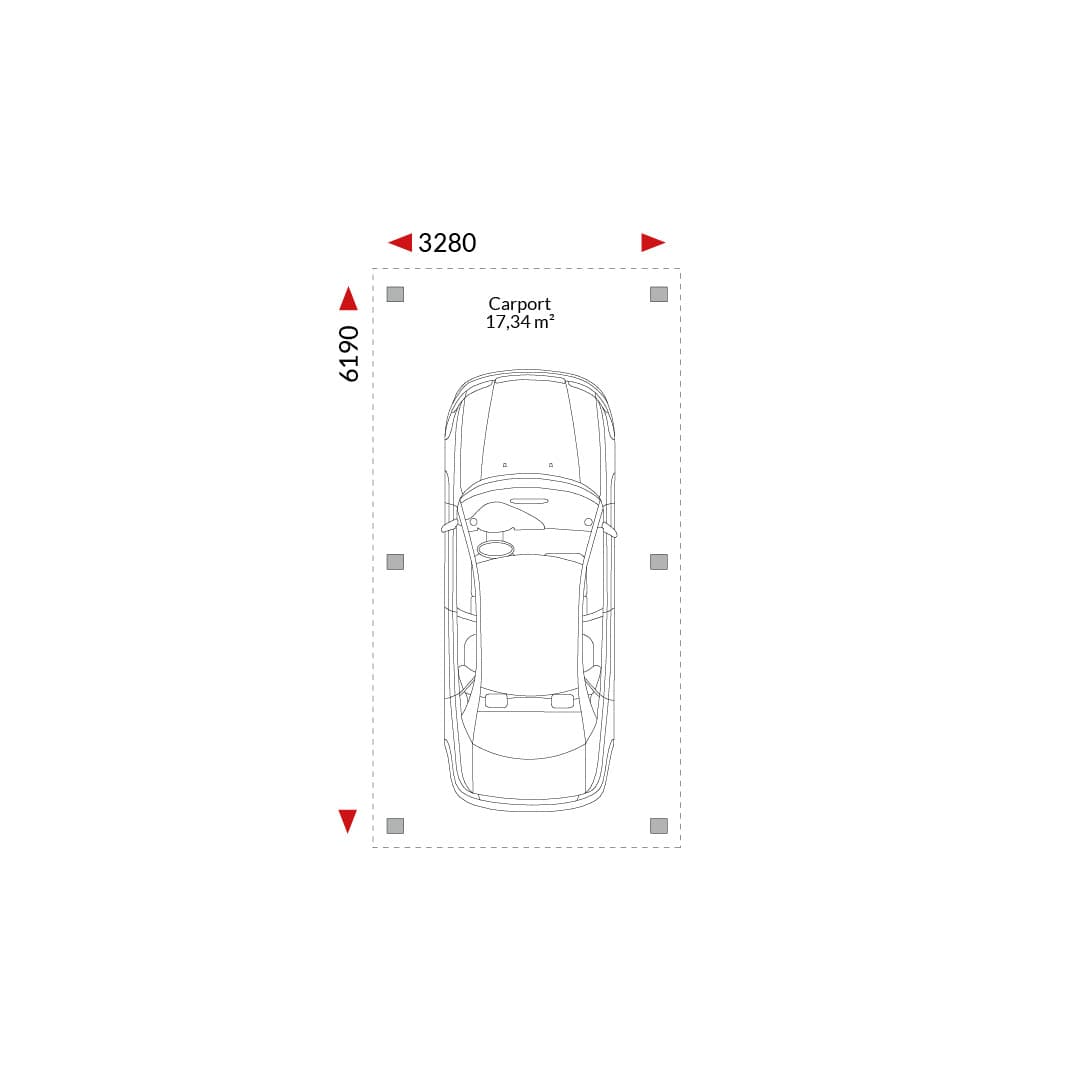 Einzelcarport mit Pultdach Grundfläche: 17,34 m² Außenmaße 2,98 m x 5,82 m Einfahrt giebelseitig