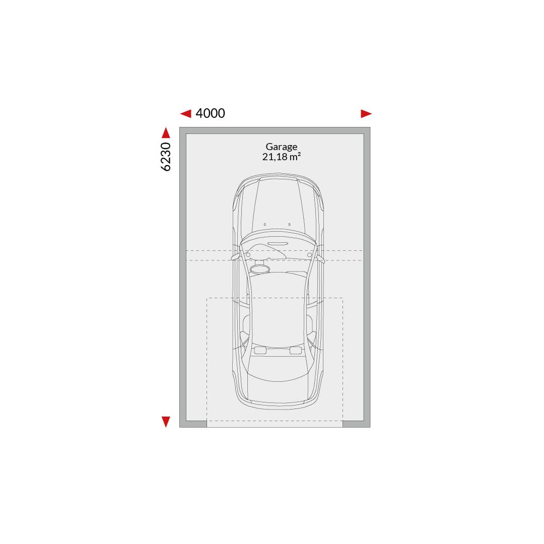 Einzelgarage mit Pultdach Grundfläche: 21,18 m² Außenmaße: 4,00 m x 6,23 m
