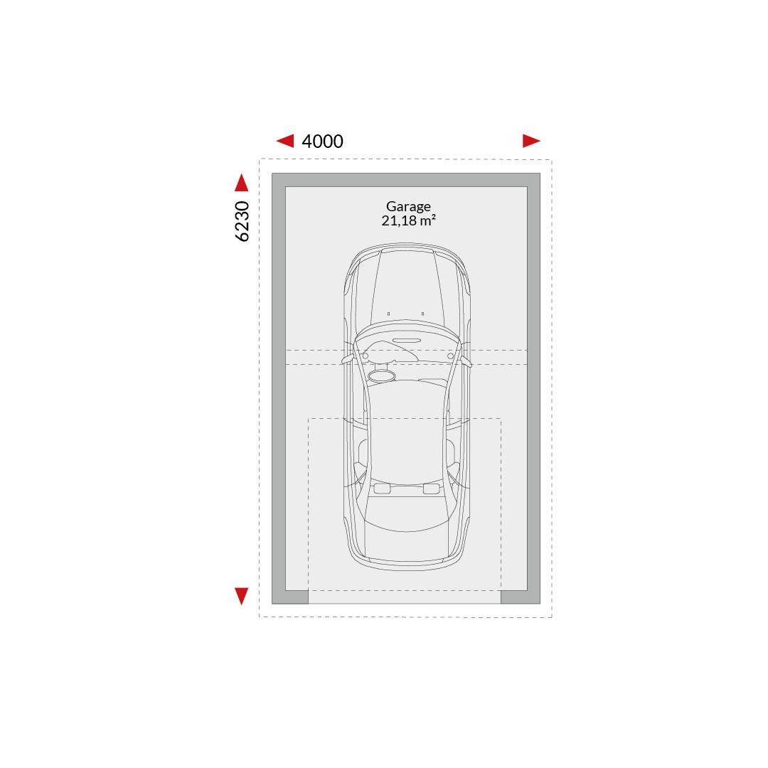 Einzelgarage mit Pultdach Grundfläche: 17,26 m² Außenmaße: 3,33 m x 6,23 m Tor giebelseitig